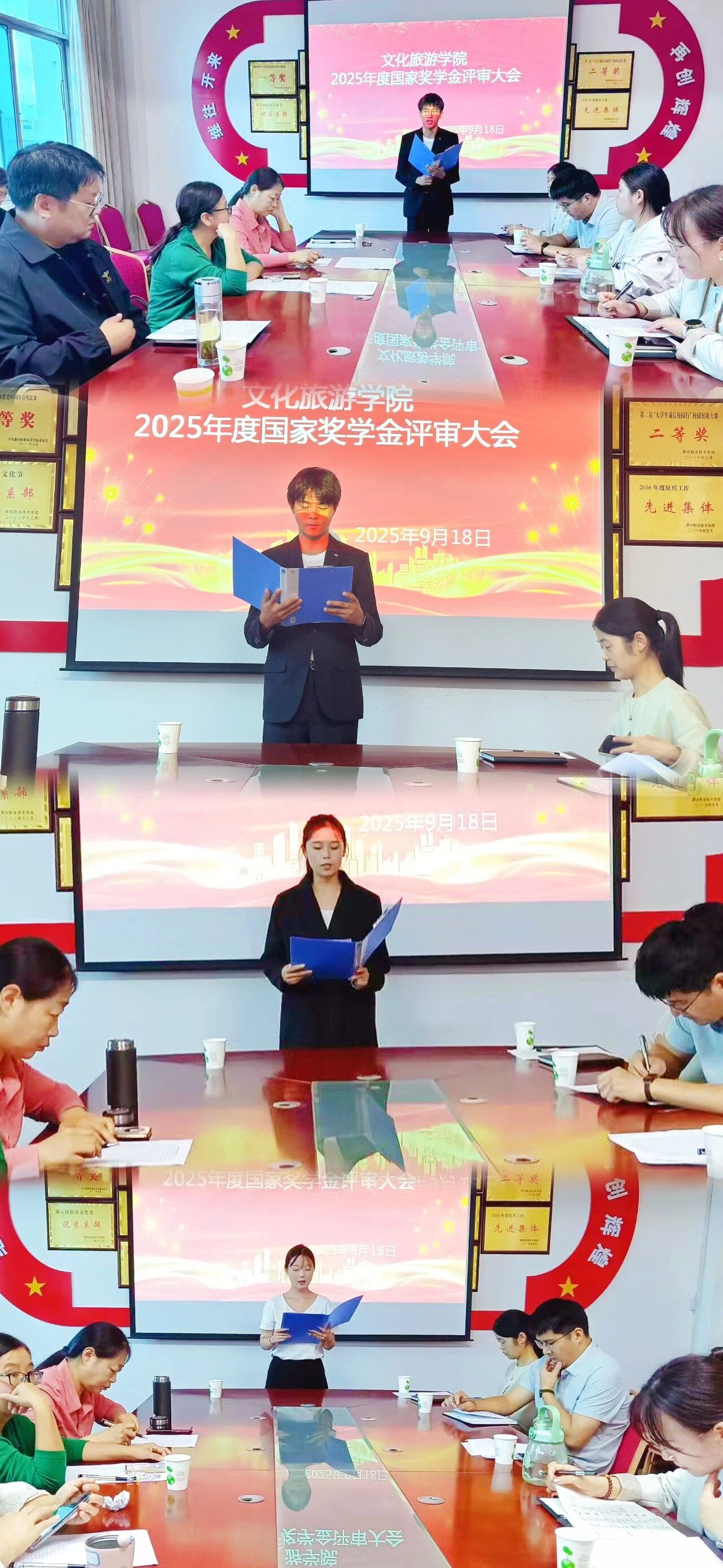 评审会上,候选人依次上台,通过富有感染力的演讲,全面呈现了各自在校期间优异的学习成绩、丰富的学生工作经历、突出的荣誉奖项、扎实的社会实践成果以及良好的人际交往能力。他们自信从容、风采卓然,展现出文旅学子追求卓越、全面发展的精神风貌。